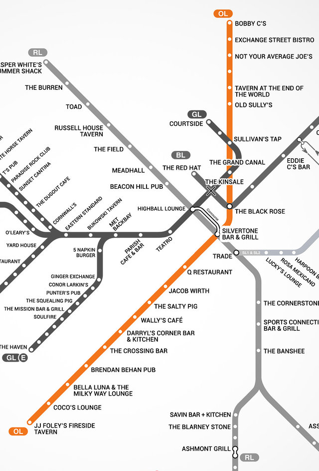 Boston S First Map Of Bars Near The T Mbta Bar Map Thrillist
